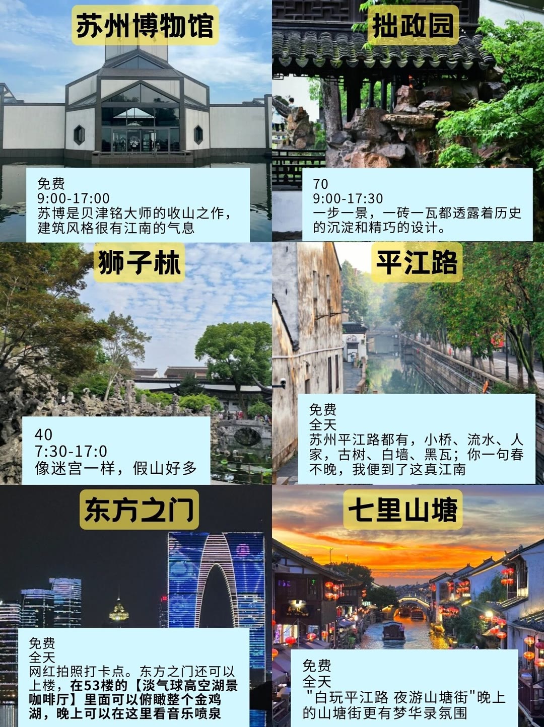 行程规划:📍苏州高铁站-📍苏博一📍拙政园一📍狮子林一📍平江路一📍东方之门一📍金鸡湖一📍七里山塘街