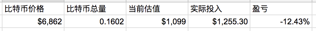 如果当初按月定投,从最高的$8600跌倒现在的$6800,直接的亏损会是-20%