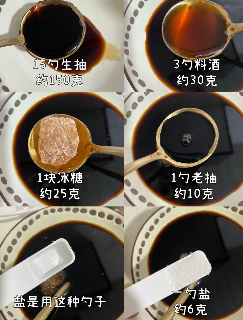 5.加入150克生抽,10克老抽,30克料酒,25克冰糖和 6克盐煮开