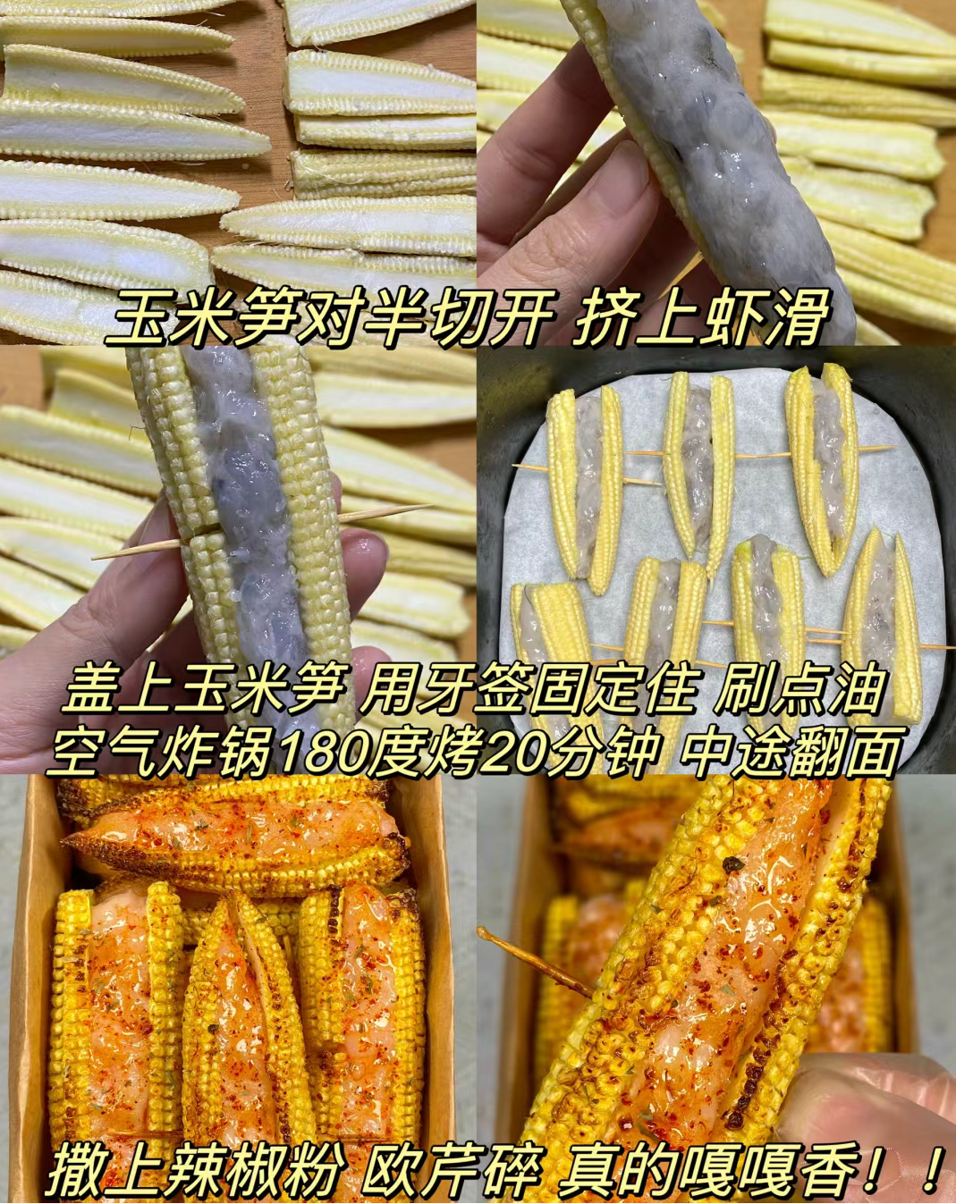 巨巨巨好吃的🌽🌽🌽spexxxxxx (32)in #cn • 2 years ago 海底捞的“新菜谱”被我get到了[哇R][哇R] 把虾滑夹在玉米笋中间,再用牙签固定住[赞R] 放在炸锅上 炸好出锅 撒点辣椒粉 欧芹碎 真的香哭了,配方给公主们整理在图5⃣️啦!! 一定要去安排,一整个香住了[色色R][色色R] #空气炸锅美食 #空气炸锅食谱 #我的空气炸锅牛逼症犯了 #小吃 #海底捞 #一人食吃什么 #美食日常 #玉米笋 #虾滑