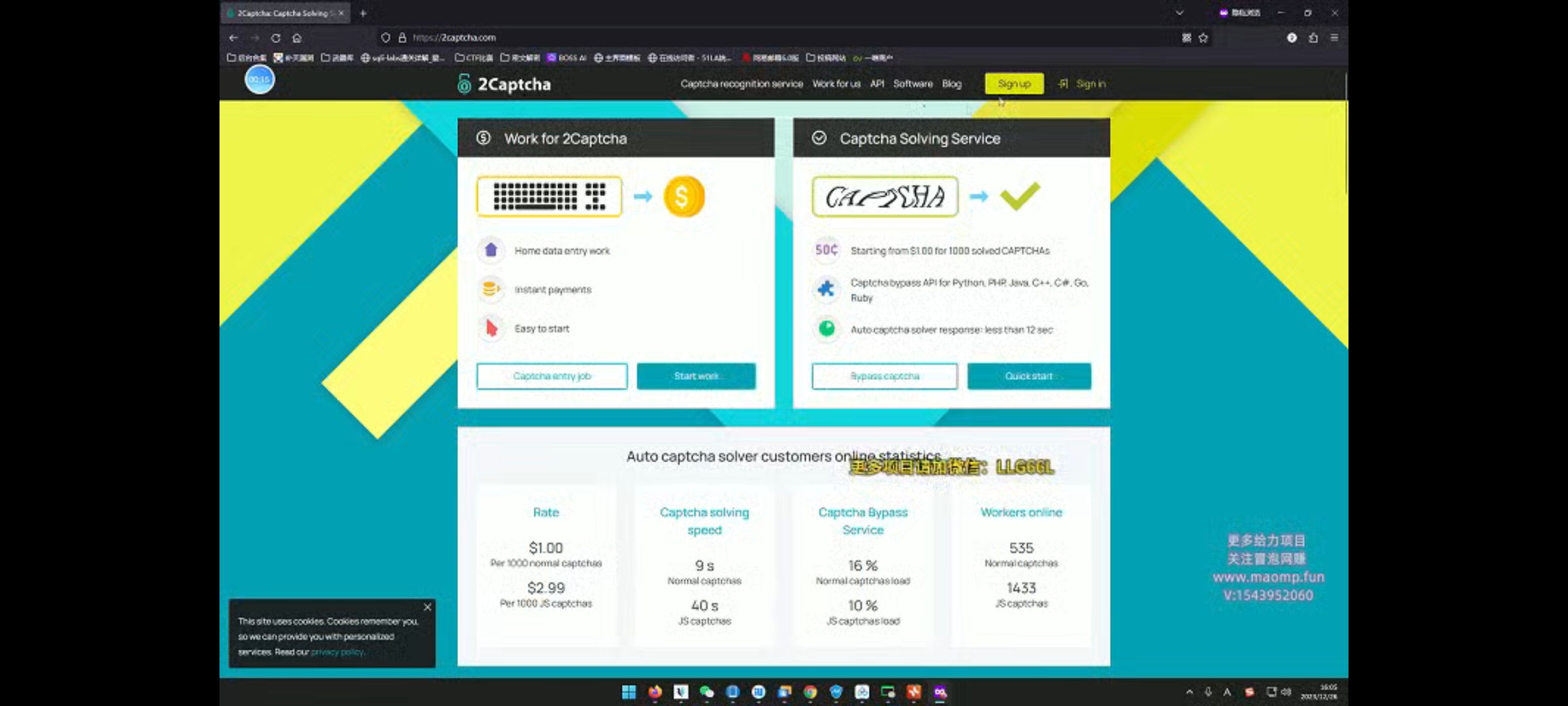 然后呢就是可以开始工作了,手机电脑都可以,输入一个验证码呢是0.1美金,一天大概可以得100-200美金