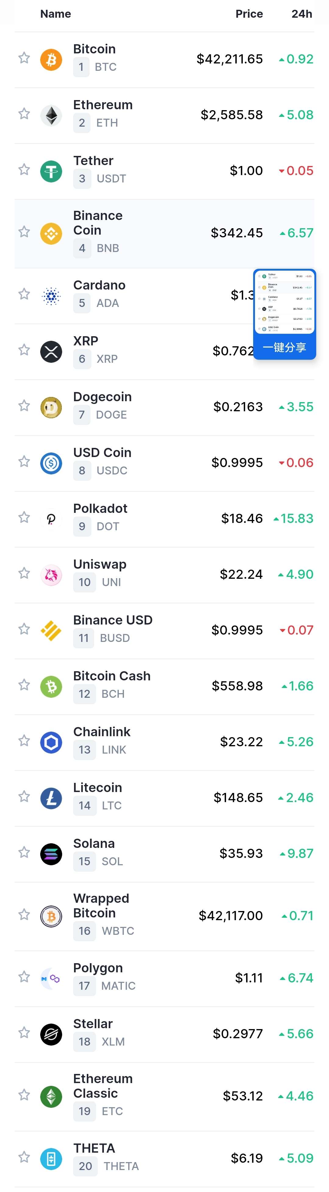 主流币选哪些,我们看市值排名前二十,有比特币、以太坊、BNB、ADA、XRP、DOGE、DOT、UNI、LINK等。