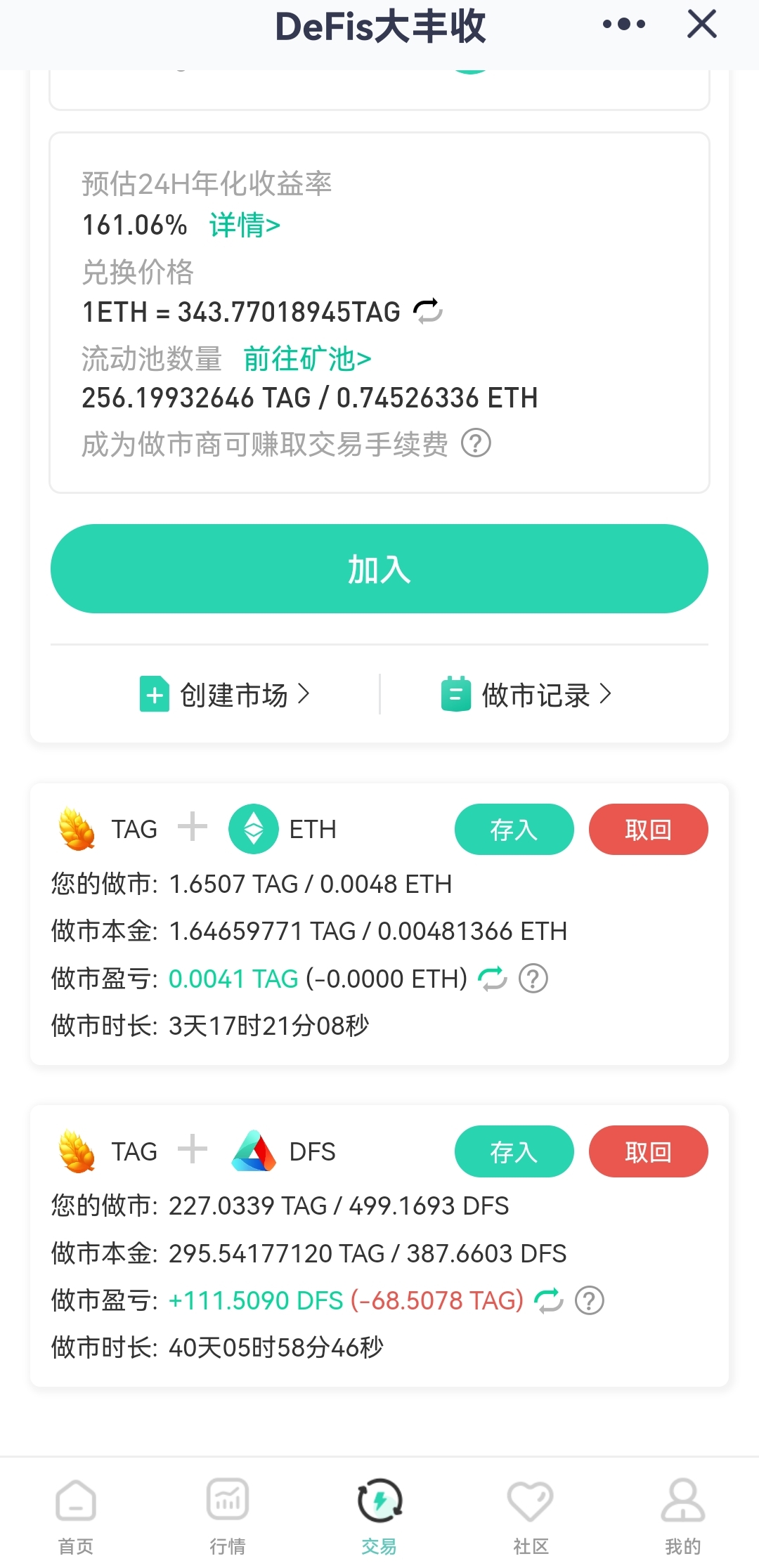 我现在最新的策略是囤以太坊,方法是把大丰收中TAG/DFS每天挖矿的收益换成ETH,配对TAG边囤边挖。