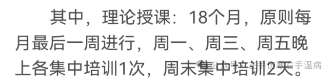 这个文件原意是好的,只是我看到培训时间有些短,总共24个月,前18个月理论学习,而且不是全日制,是每个月最后一周,不是全天是晚上,而且是一三五晚上,周日周六学习两天。
