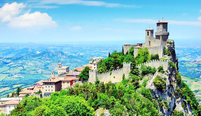 圣马力诺:一个位于意大利中部的独立国家,是世界上最古老的共和国之一。圣马力诺以其美丽的山脉、宁静的村庄和历史悠久的城堡而闻名。它是欧洲第三小的国家,也是世界上人口密度最小的国家之一。圣马力诺的首都是圣马力诺城,这座城市被列入联合国教科文组织的世界遗产名录,是一个充满历史和文化意义的地方。圣马力诺以其低税率和金融自由而吸引了很多游客和投资者。这个国家也是摩托车赛事的热门目的地,每年都会吸引大量的摩托车爱好者。