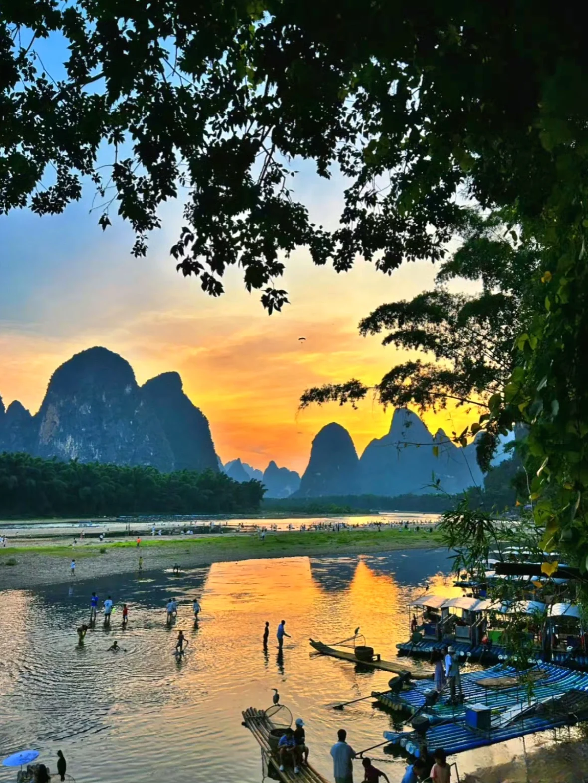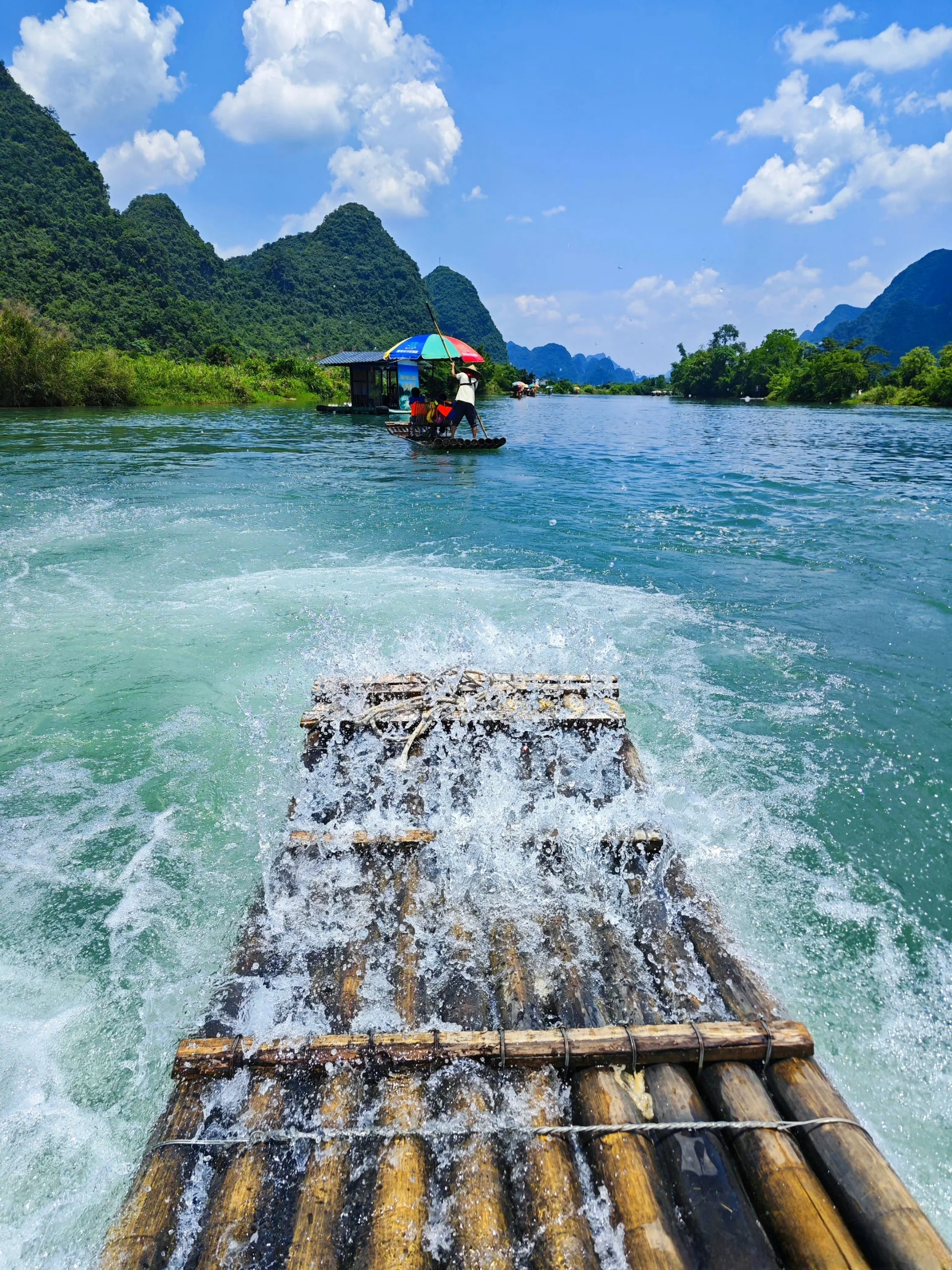 早上吃的是桂林米粉,然后直奔兴坪古镇打卡20背景取景地,记得带20块纸币,遇龙河竹筏漂流姐妹们记得带鞋套或者穿拖鞋,不然冲坝jio会湿哦!!关于给不给小费,我觉得看运气[新月R]我们遇到的这个师傅人很好,会和我们聊天,划得也不快!!