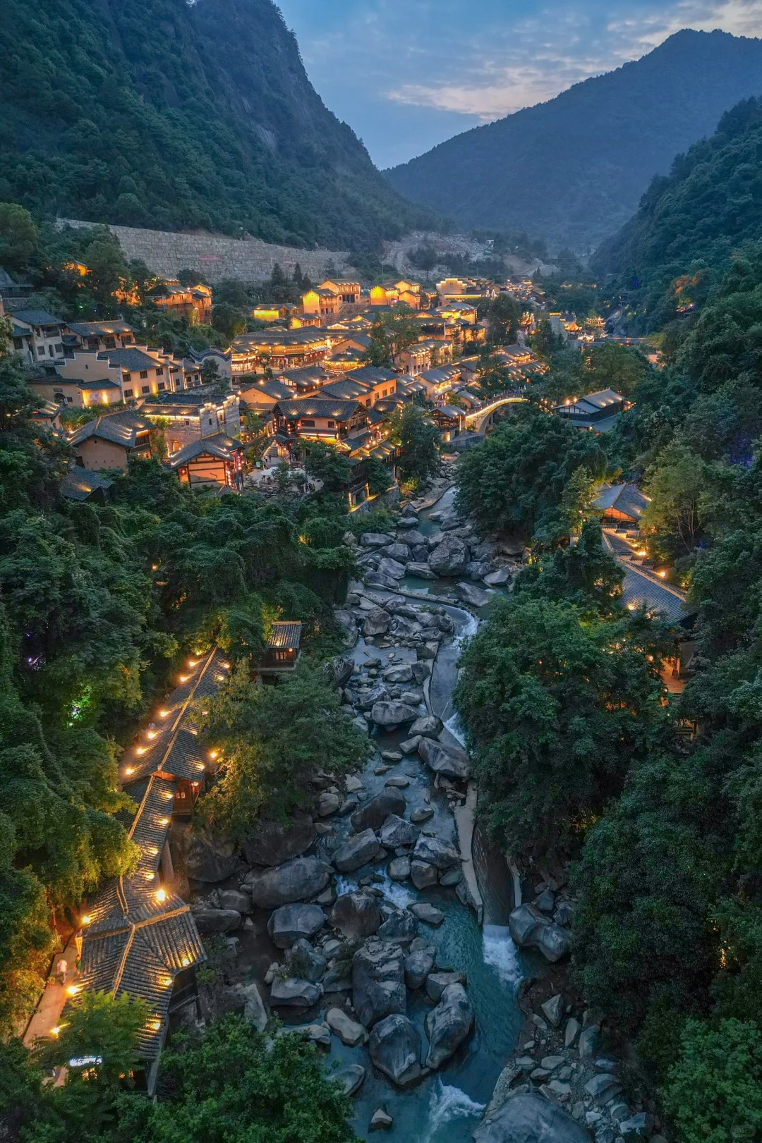 夜幕下的望仙谷才展露出仙侠世界的色彩,亭台楼阁悬崖瀑布,像是游戏中的仙侠世界美翻了。