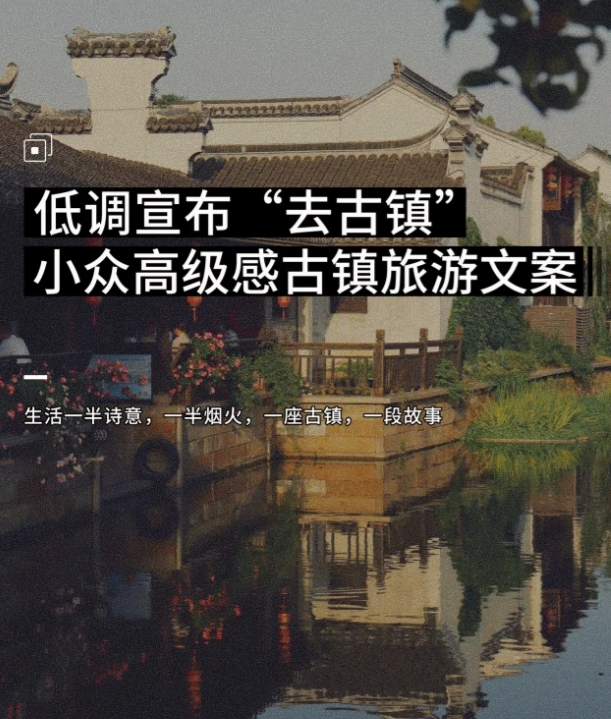去古镇旅游这么发小众又高级|旅游文案tomzoth (30)in #cn • 2 years ago ▶ 每一座古镇,都有一个故事 ▶ 古镇里,写满岁月悠长 ▶ 每个人心中,都会有一个古镇情怀,流水江南,烟笼人家 ▶ 繁华外,市井处,古镇里,醉是人间! ▶ 慢品人问烟火,闲观小桥流水,便是好时光,感受古镇的慢生活。 ▶ 只有亲身走在乌镇的小巷里,才能感受到似水年华里的温柔。 ▶ 被时间遗忘的古镇,记录着烟火生活 ▶ 生活一半诗意,一半烟火,一座古镇,一段故事