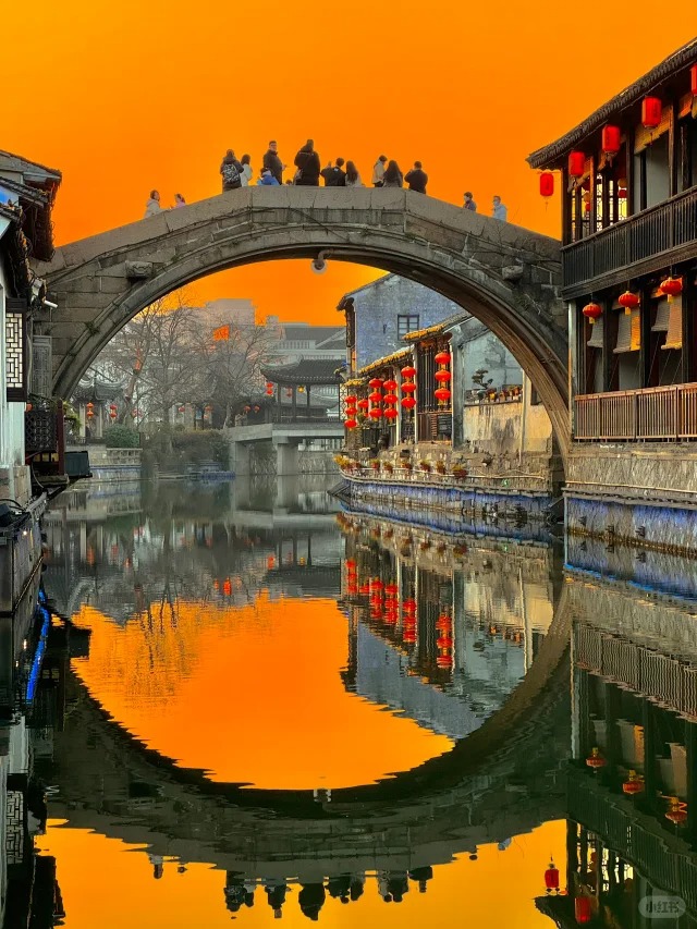 1️⃣十字码头和百间堂:逛完一圈后,日落🌅时间,⚠️拍照最佳,两边小船停运,河边变得平静如镜,两边的江南建筑群,亭台楼阁,千年古桥,都倒影于水面,仿佛投射的千年光景,特别迷人,拍照📷真的好出片~还可以寻一家河边人家,喝茶🫖吃饭真的好惬意