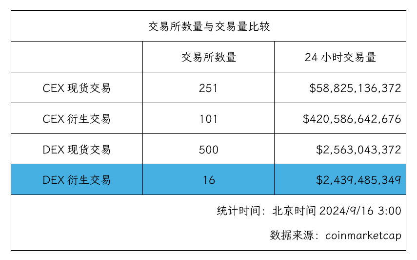 然而,衍生品DEX仅16家,还不到衍生品CEX的6分之1。