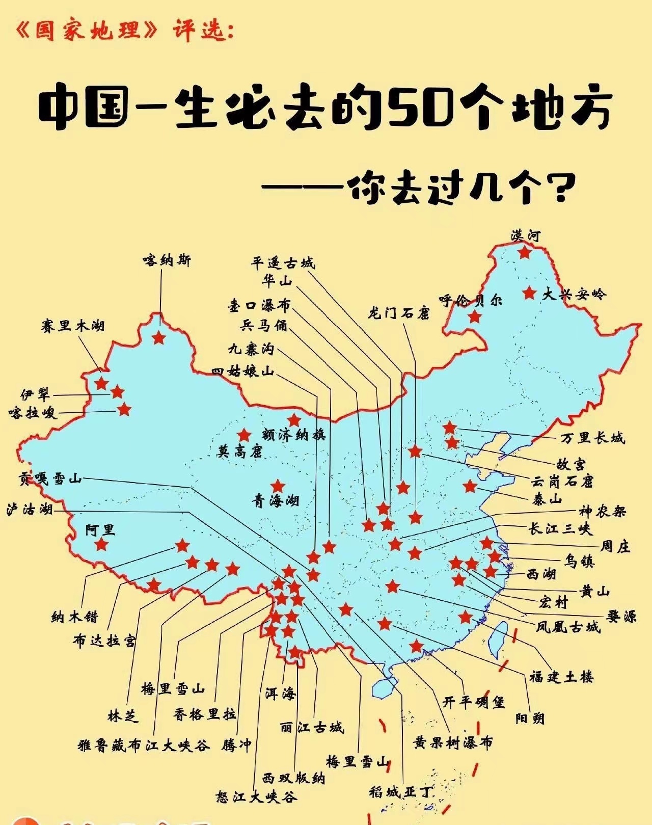 我有个梦想,要走遍《国家地理》评选的中国人生必去的50个地方,不知不觉已经走过了一半。那你去过几个了❓