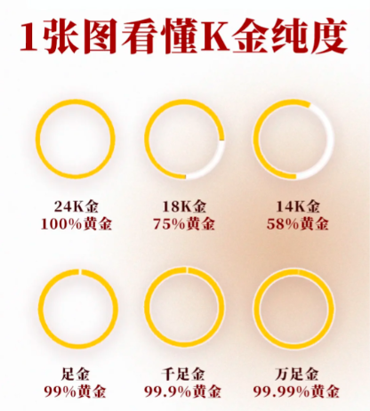 k金是按照黄金的纯度而划分的,k金分为1k~24k