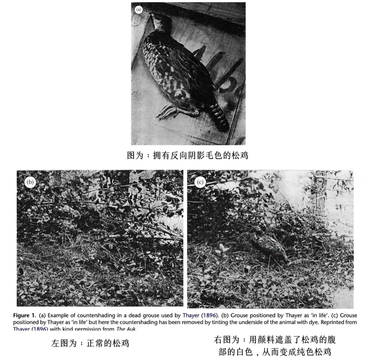 在现实中真的是如此吗?下面是塞耶使用松鸡做的“反向防影的视觉效果对比”的实验照片: