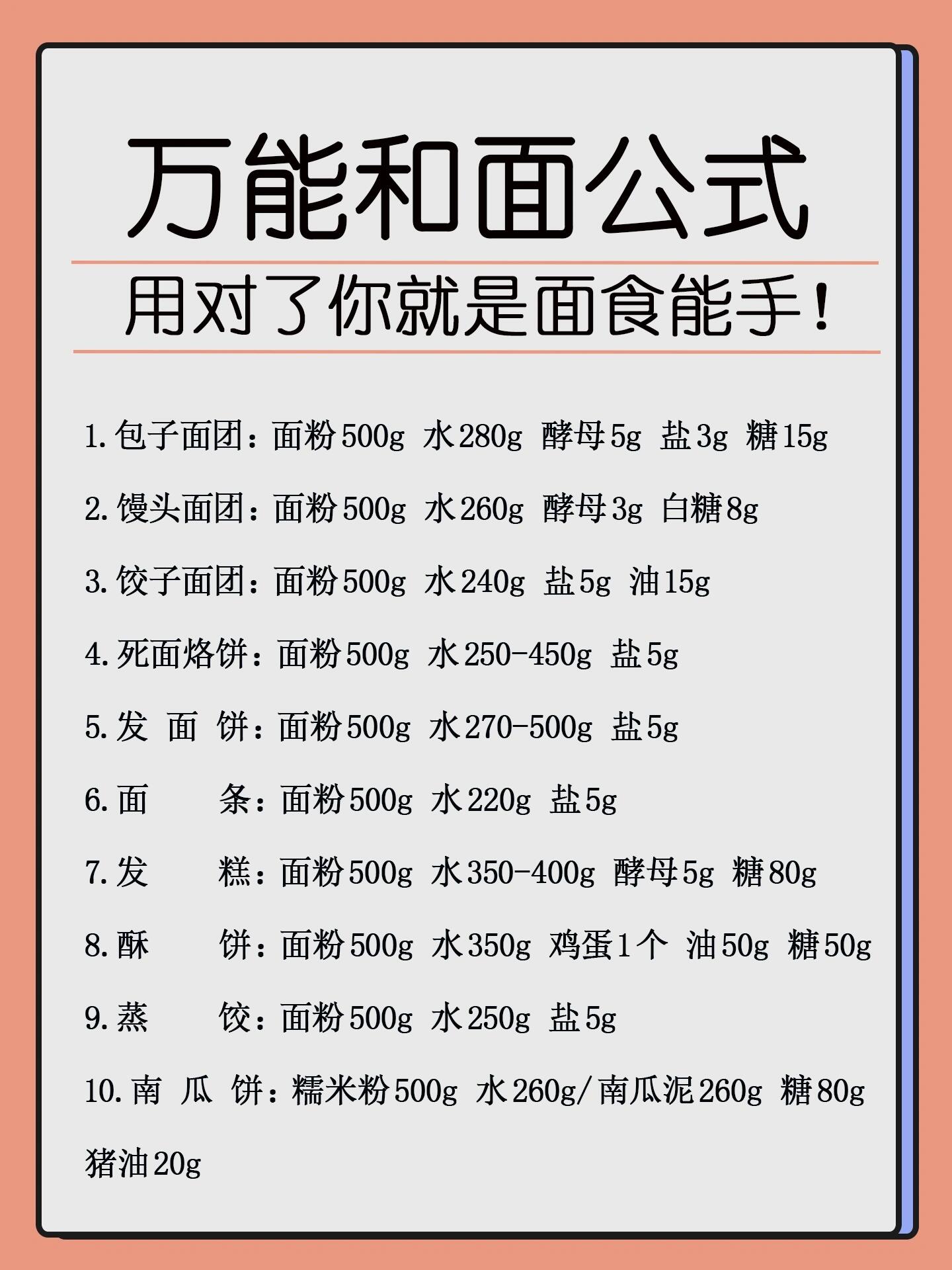 ✅3.饺子面团:面粉500g 水240g 盐5g 油15g