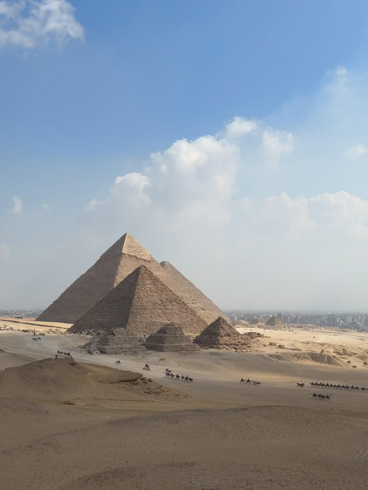 1️⃣ 金字塔 & 狮身人面像:别信门口 “免费带路” 的当地人!带你绕远路还逼你骑骆驼,开口就要 1000 。推荐跟导游去西南侧沙丘,清晨 6 点前拍全景