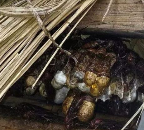 原来在灵芝的下面就是蜜蜂窝。看法在危急时刻,还是命最重要!大家觉得呢?欢迎留言!