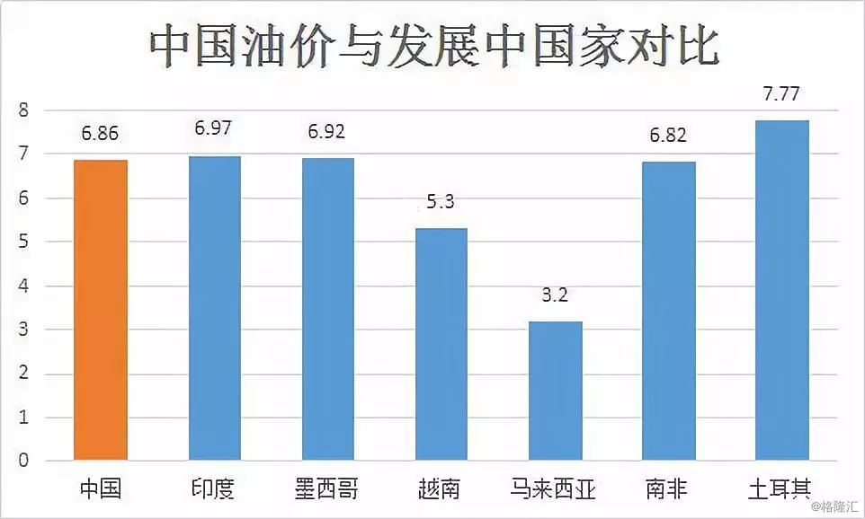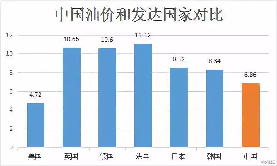 那中国油价是什么情况,我们来和几个发达国家对比一下。