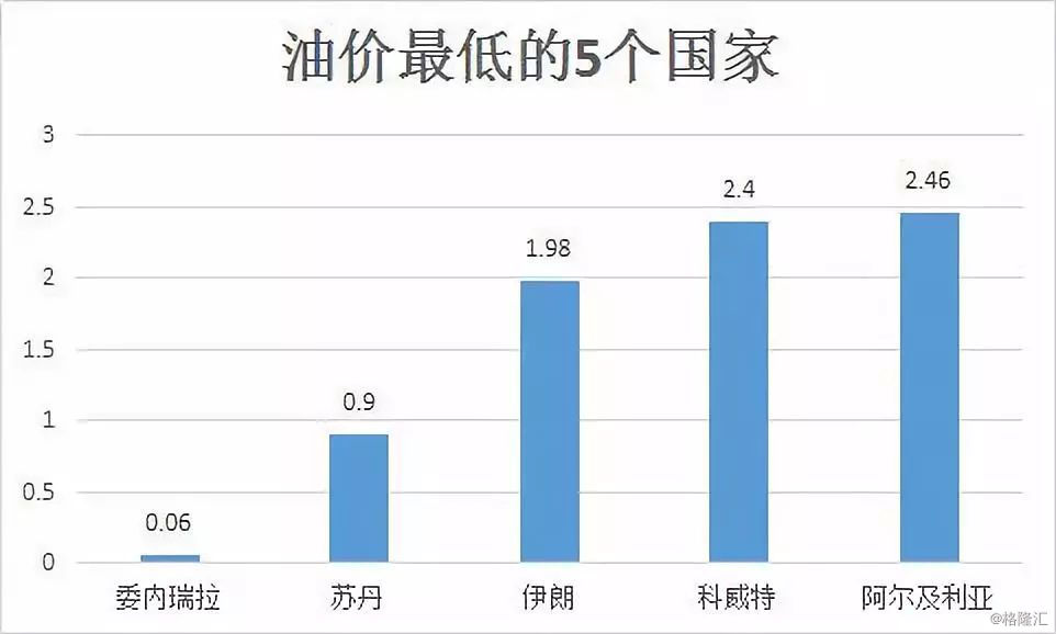 世界石油价格最便宜的五个国家为:委内瑞拉、苏丹、伊朗、科威特、阿尔及利亚。这五个国家作为产油国,石油价格低就不用解释了,这个咱们羡慕不来。