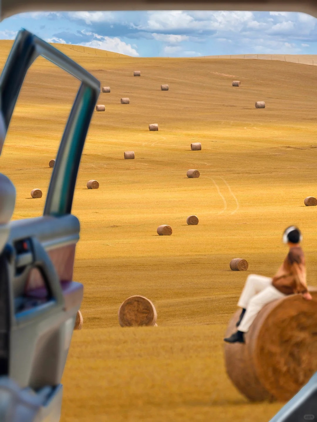 圆滚滚的草垛子散落山野