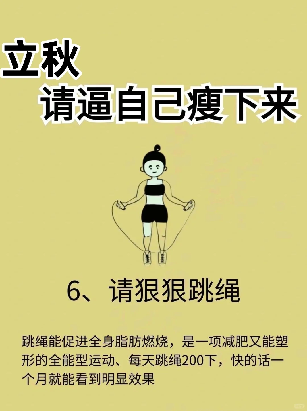 早午饭必须吃,晚饭不吃或少吃喝水量一定要达标饮食要多增加蛋白质,牛奶,蔬菜一天安排三次有氧运动(快走,爬楼,跑步或跳绳)坚持到这里,那恭喜你马上就要成功啦!坚持到这里,就离成功不远了(可👇5-7斤)
