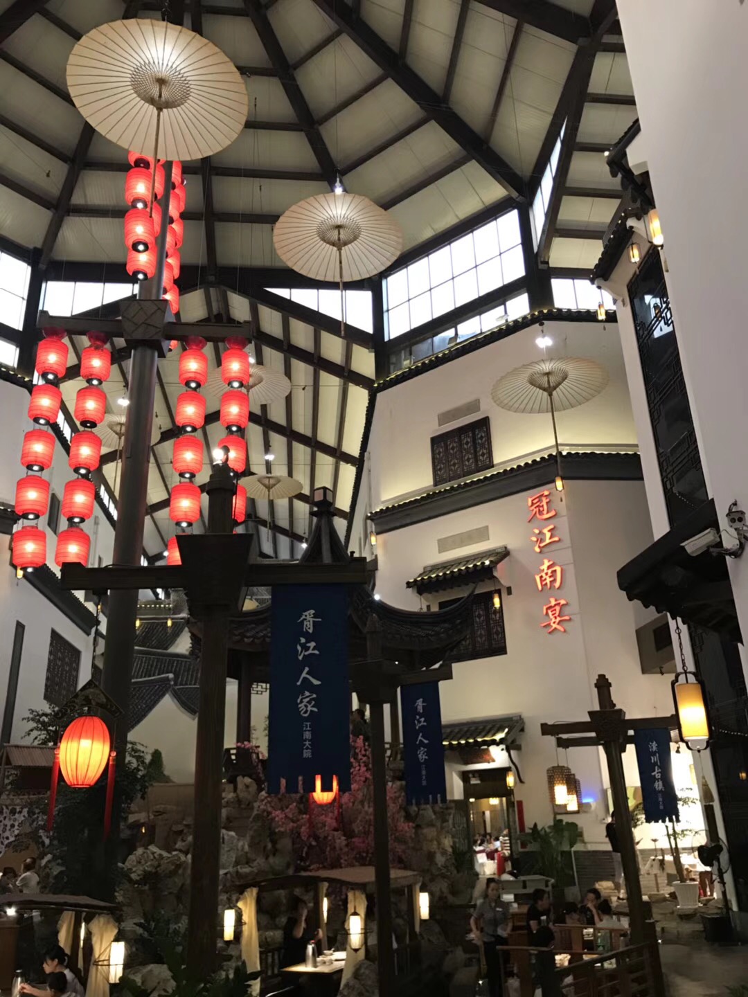 这次的餐厅选择了最具江南风的江南大院(据说是网红店),我想很多人估计冲着环境才去的。首先不得不夸环境真的很好,把江南风打造的淋漓尽致。整个餐厅的重点就是四条船,可以在船上用餐,但得提前预约。