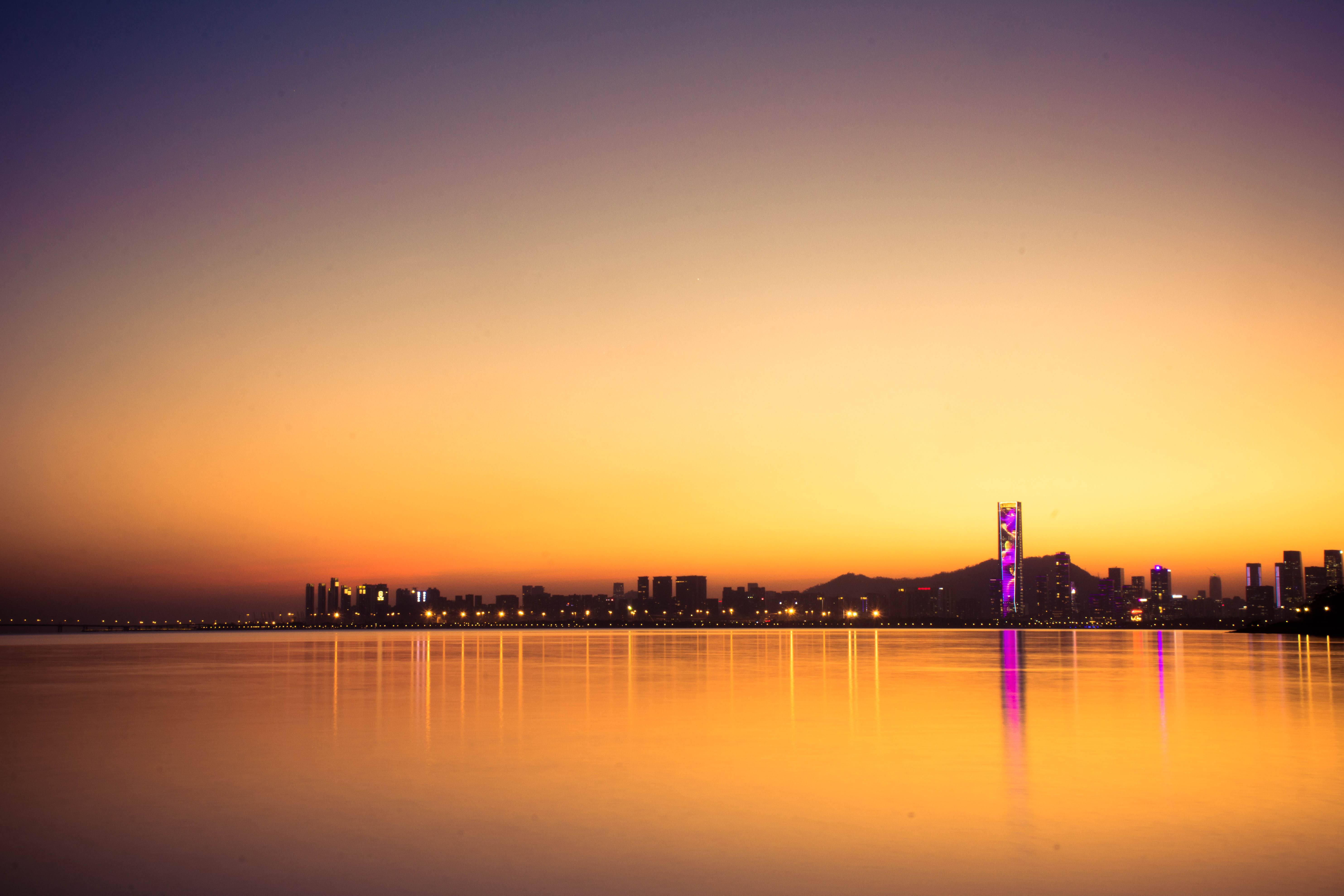 这些都准备没问题了,那就是调整相机,准备拍摄。拍黄昏最重要的是调整相机的白平衡,很多时候大部分人都不敢大胆的调整白平衡。其实前期要拍好片子就要敢用不同的白平衡来拍摄,印象里黄昏就该是黄黄的暖色对吗?我想要的蓝色怎么去记录下来呢?当然你要是拍金黄色的黄昏那就尽可能的把色温调高。相机快门、光圈、ISO选择问题。黄昏的时候其实光线还是充足的,曝光时间可以不用特别的长,光圈根据自己的拍摄主题来进行调节。ISO我一般都不会选择高感拍摄,因为我的相机是半幅相机,高感基本上片子的画质就没法看了。兼顾画质我选择了低感,然后选择长时间曝光来解决曝光不足的问题。有了快门线和脚架的辅助,不用担心画面拍不稳或者拍虚了。