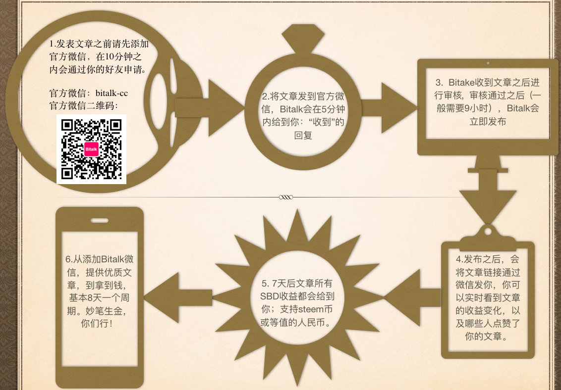 很多读者又说了:我们也不想那么麻烦,不想下载BitalkAPP,也不想注册Steemit,更不想摸索学习怎么使用这个区块链社交软件——能不能像给报社投稿那样,我们编辑好文章,发给你,你给我们发表出来,美元收益给到我们就行。我当时就拍大腿,这么好的想法我怎么就没有想起来呢,人民群众的智慧果然还是最高的!下面是这个想法的执行: