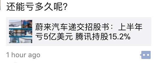 半年虧掉了五個億!這是個多麼什麼概念?四月的時候,在美國學金融的學生回國實習,在一個國企做上市審計,跟我說一半上市要三年準備,比如台灣韭菜郭董台銘就是默默準備了三年,然後拼多多是半年就去美國了!然後蔚來也是!一方面說明了在國內上個市有多難,另一方面也說明了到美帝那裏騙錢有多容易!要知道胡瑋瑋童鞋虧掉全國人民幾百萬活躍用戶的銀子從而獲得財務自由也至少要花一年半!