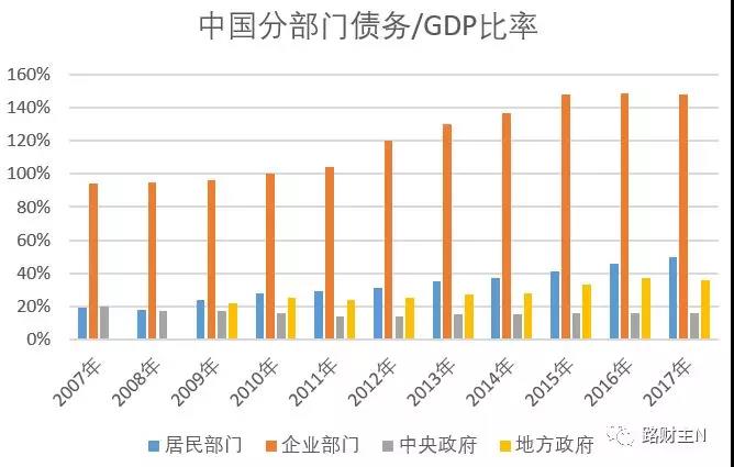 2017年初的时候,我曾经写过一篇文章,其中提到,2007年以来,中国债务总量持续增加,到了现在,除中央政府还有加杠杆(增加债务)的能力之外,包括居民、企业和地方政府,如果再增加债务,很快就会连利息都支付不起,接下来造成整个经济的大崩盘(见下图)。