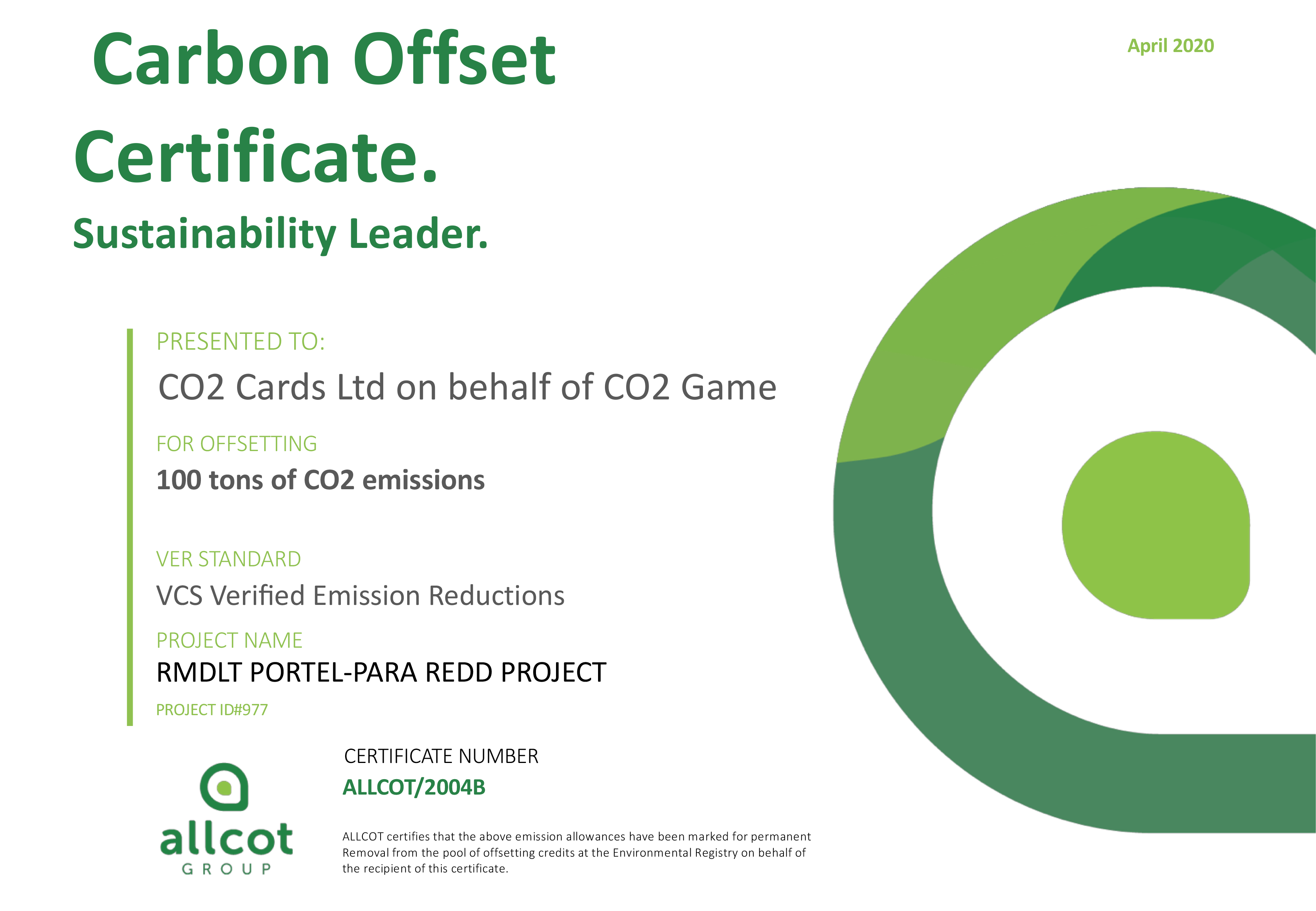 CO2 Game 100 Tons Offset