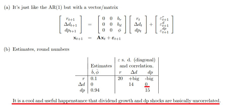 2. Put three facts together we have "Linearized Present Value identity / Vector Autoregression"