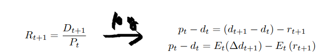 Now extend this to multi-period level, one have "Campbell-Shiller present value formula" useful ref