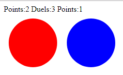 So if the buttons are clicked (or taped) the counter of duels increases everytime, and the points only increase depending of which was clicked.