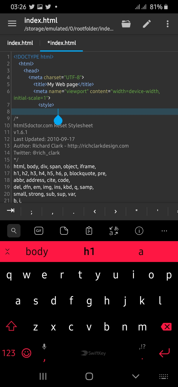 Creating a responsive website on my mobile phone part 1.