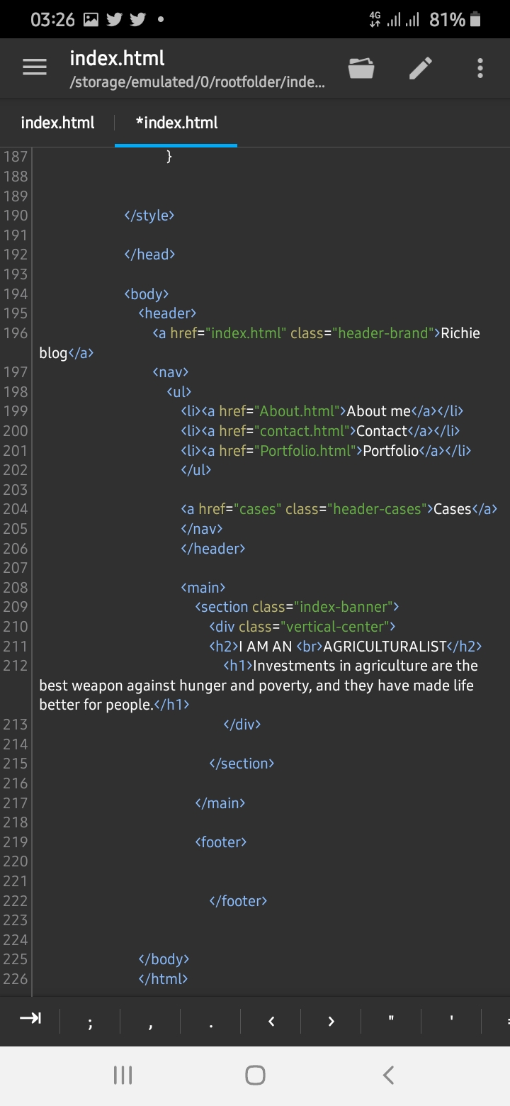Today I will be creating a web responsive website with my mobile phone using html and css. So let's jump into our coding file.