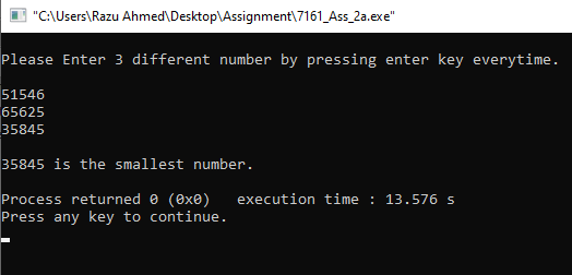 এই তো সেদিন আমাদের প্র্যাক্টিক্যাল ফাইনাল পরীক্ষা হলো। খুব ভালো ভাবেই প্রস্তুতি নিয়ে গিয়েছিলাম। কারণ প্রোগ্রামিং ভালো লাগে আমার। বাসায় অনেক প্র্যাকটিস করেছি। এমনকি ক্লাস মেট দের সাজেশন ও দিয়েছি যে এটা আসতে পারে ওটা আসতে পারে। ভাগ্য কি ভালো আমি যে কয়টা প্রোগ্রাম করেছি, সেগুলোই এসেছে। ৪ টা প্রোগ্রাম দিয়েছিলো । এর মধ্যে আমাদের ৩ টা দিতে হবে। আমি ৩ টাই পারি। এবং আমার ৩ টা প্রোগ্রামই রান হয়। এসব নিয়ে বিস্তারিতো একটি পোস্ট লিখবো নে। তো আজ যে প্রোগ্রাম দেখাবো সেটি হচ্ছে ৩ টি সংখ্যা ইনপুট নিবে। তারপর সেগুলোর মধ্যে ছোট কোনটা সেটি আউটপুট এ দেখাবে। আগেই বলি আমি নতুন। এখানে অনেক এক্সপার্ট আছেন। আমার ভুল ক্ষমার দৃষ্টিতে দেখবেন।