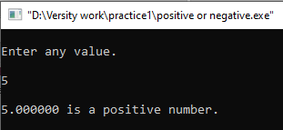 এবার একটি কন্ডিশন যুক্ত করলাম যে যদি সঙ্খ্যাওটি ০ থেকে বড় হয়। তাহলে যেটা প্রিন্ট করবে সেটা হছে সংখ্যাটি একটি ধনাত্নক সংখ্যা।