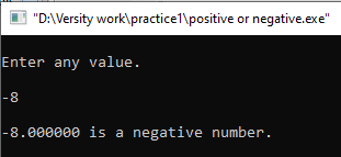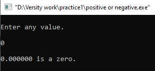 এবার আরো একটি কন্ডিশন ও প্রিন্ট ফাংশন নিলাম। যেখানে থাকলো ইনপুট দেওয়া সংখ্যাটি যদি ০ থেকে ছোট হয় তার মানে এটি একটি ঋনাত্নক সংখ্যা। আর এই টাই প্রিন্ট দিয়ে শো করবে। শেষে else দিলাম। এর মানে হচ্ছে যদি উপরের দুইটি কন্ডিশন এর একটিও না মিলে। অর্থাৎ ধনাত্নক ও না ঋনাত্নক ও না তাহলে সংখ্যাটি হচ্ছে ০। তখন এটি বলে দিবে।