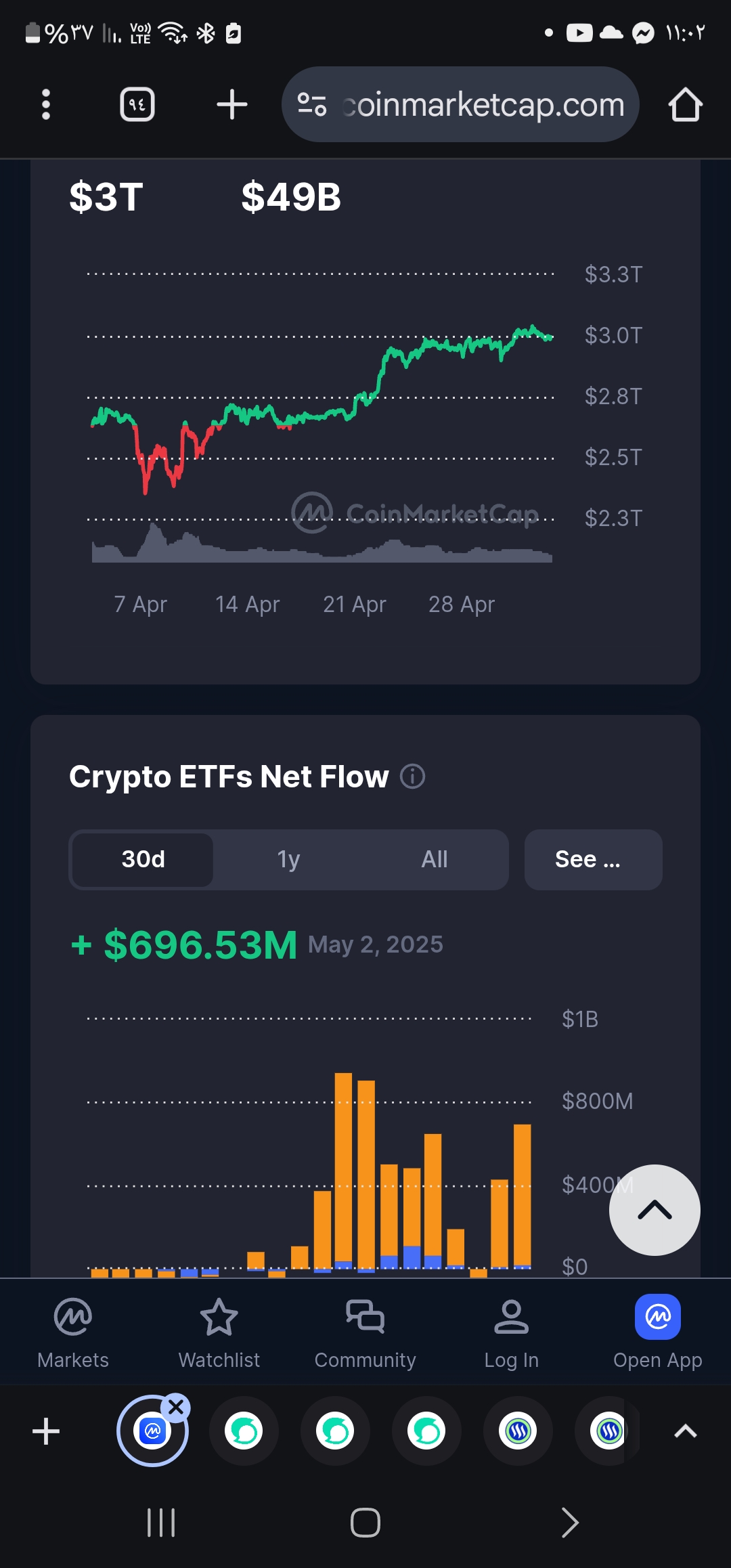 انخفض الماركت كاب اليوم ليصل الى 3 تلريون دولار