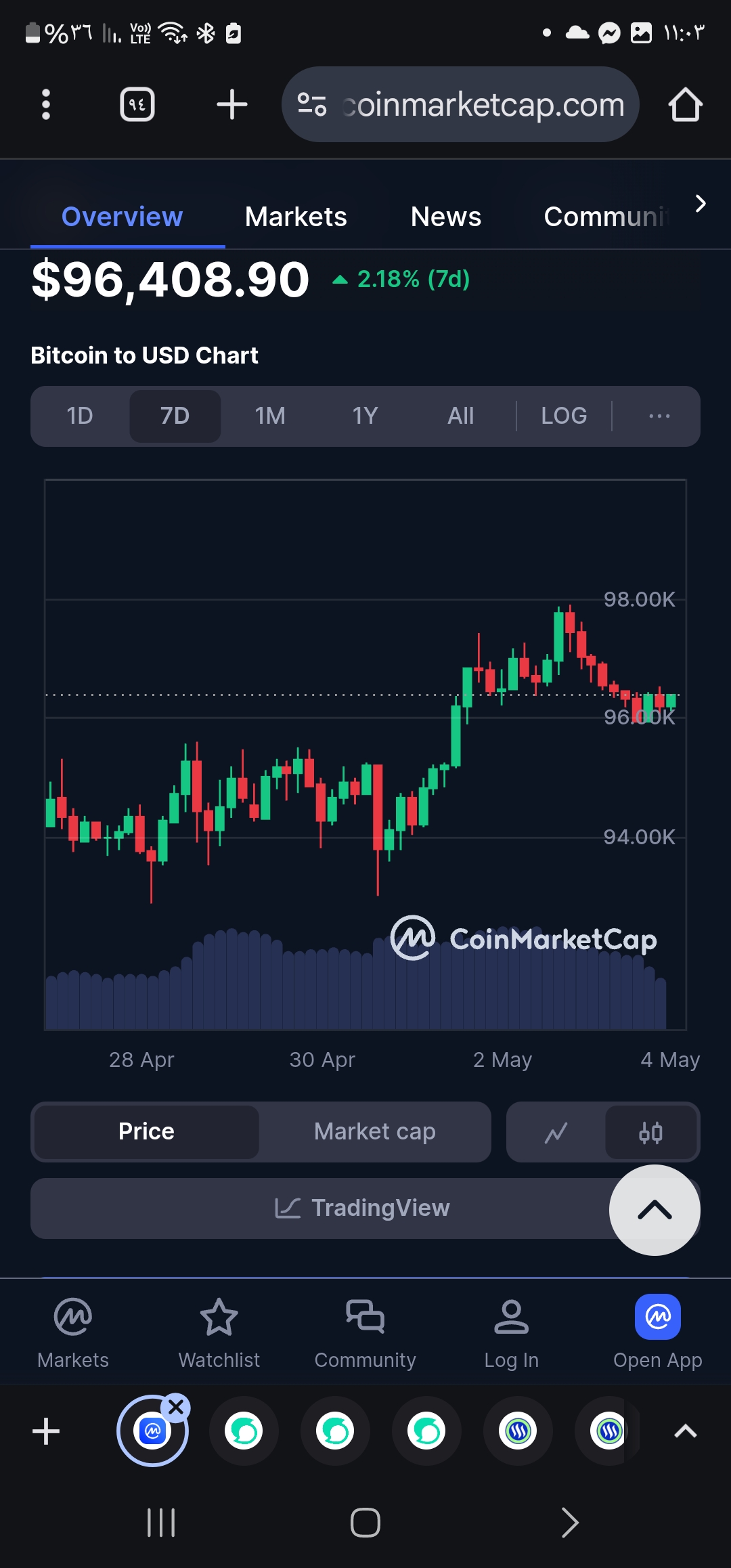 واستقر سعر البتكوين اليوم 96000دولار بعد ان وصل الى سعر 98000دولار ليقترب بذلك من المقاومة القوية عند 99000دولار
