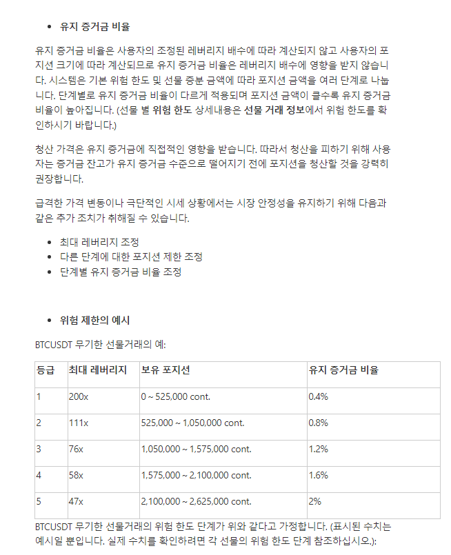 하지만 이를 악용하면 추가 손실은 거래소가 부담하기 때문에 얘네들은 '위험한도'라는 별도의 제도를 운영합니다.