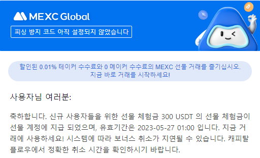 MEXC를 현재 추천 드리는 이유는 KYC를 마치는 것 만으로 선물 체험금 300테더를 받을 수 있기 때문입니다.
