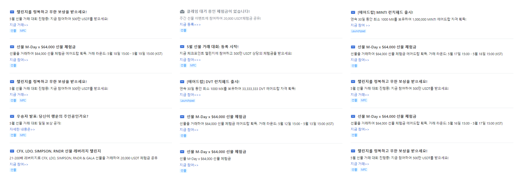 그래서 MEXC에서 취한 전략은 다양한 이벤트를 제시하는 것입니다.