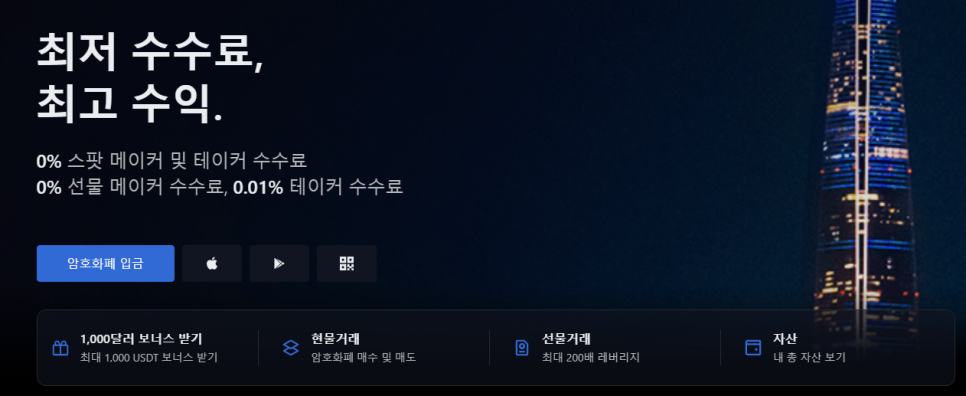 우선 선물 테이커 수수료 0.01%, 메이커 수수료 0%는 상당히 매력적인데요.