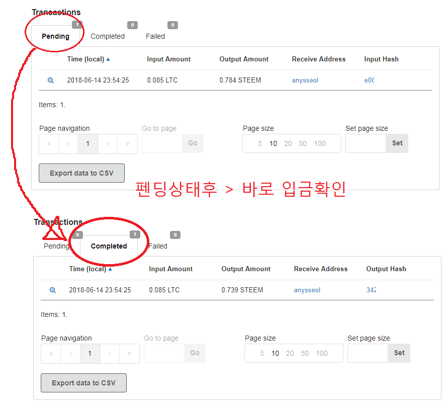 이렇게 결재까지 마쳤구요, 제가 거래하는곳에서 해당 주소로 입금을 조금 넉넉히 했네요.. 요즘 하락장이다보니 여유가 없습니다. ㅠㅠ