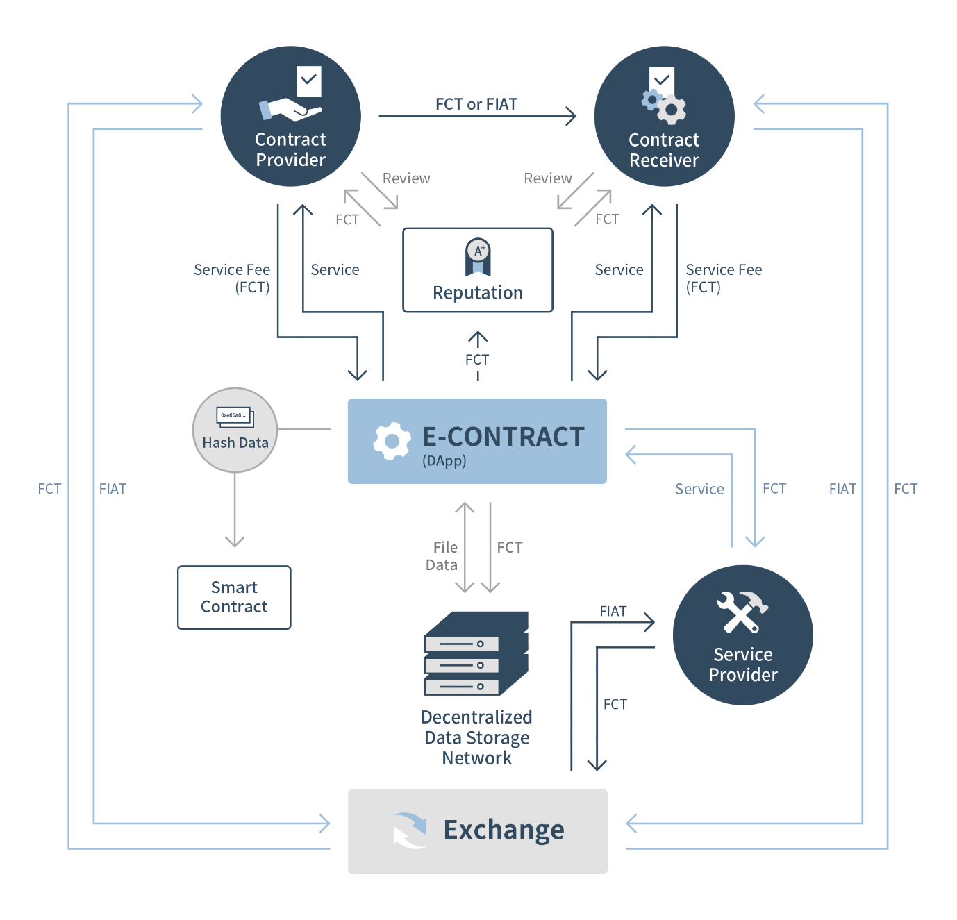 FCT는 FirmaChain의 서비스를 이용하는데 쓰이며 체결된 모든 계약서는 FirmaChain이 독자적으로 개발한 탈중앙화 데이터 저장소에 올라갑니다.