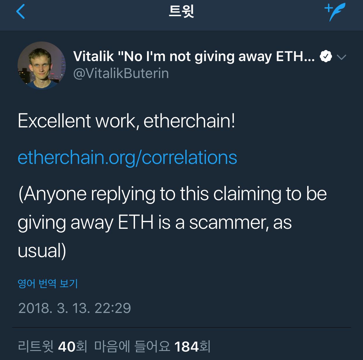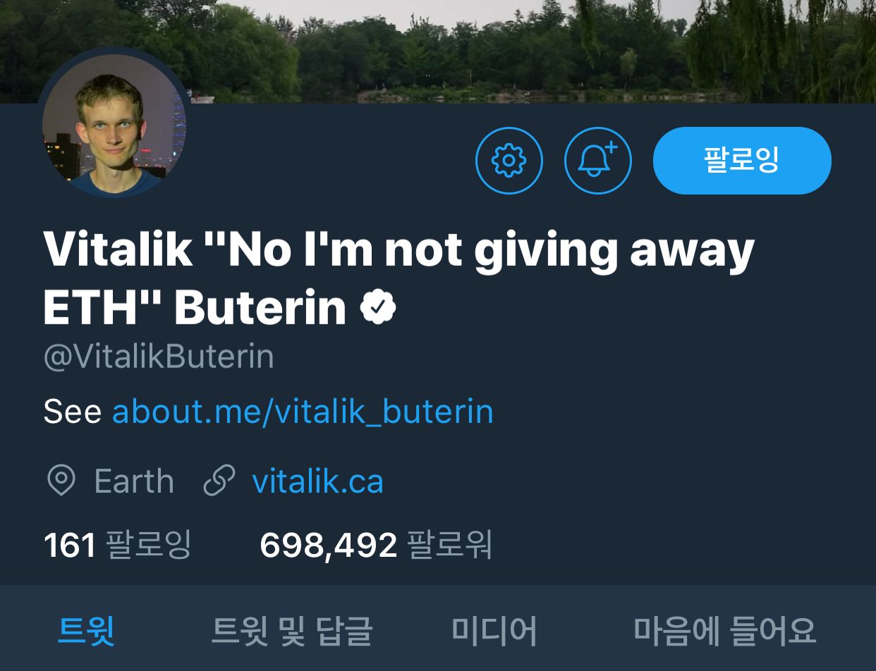[사기방지글] 비탈릭의 근황과 트위터의 사기계정들