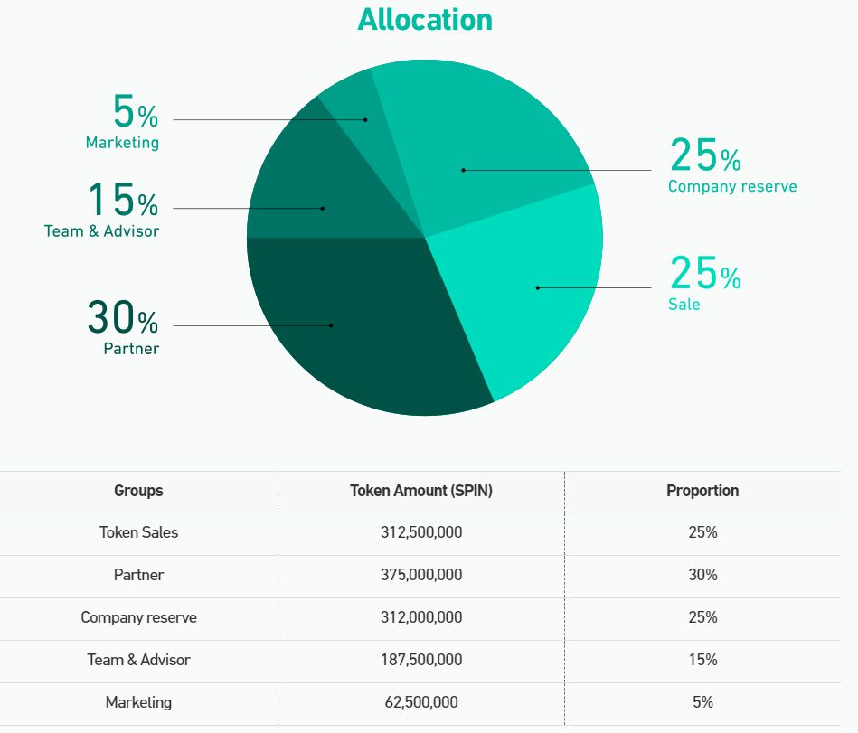 SPIN 토큰 30% 배분(파트너사 확보 목적)