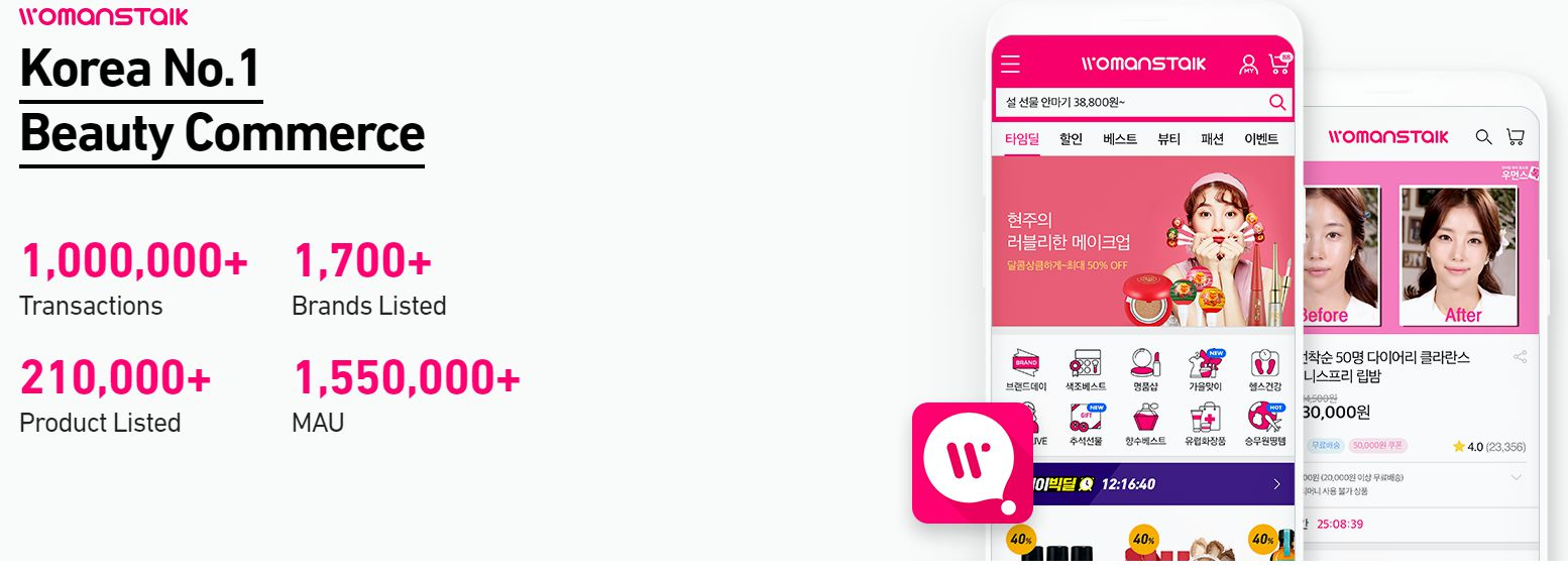 그 기업은 바로 우먼스톡입니다. 뷰티 커머스 중에서도 비디오커머스라는 특화된 버티컬에 포지셔닝한 기업으로, 홈쇼핑에 국한되어 있던 미디어 커머스를 온라인에 도입한 1세대 기업이라고 합니다.