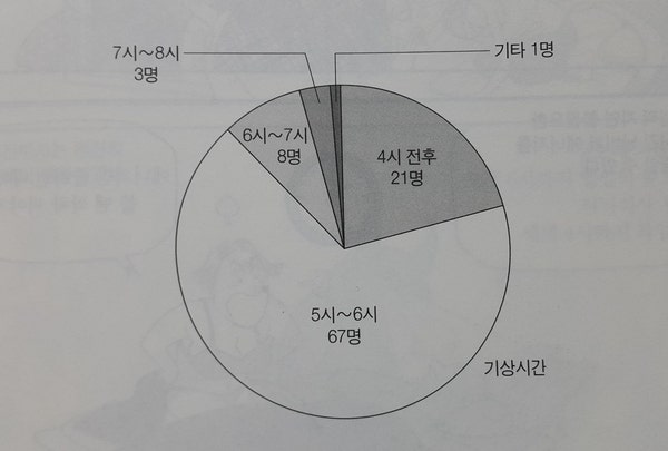 6시 이전에 기상하는 사람들이 100명중 88명입니다. 놀랍지 않나요?